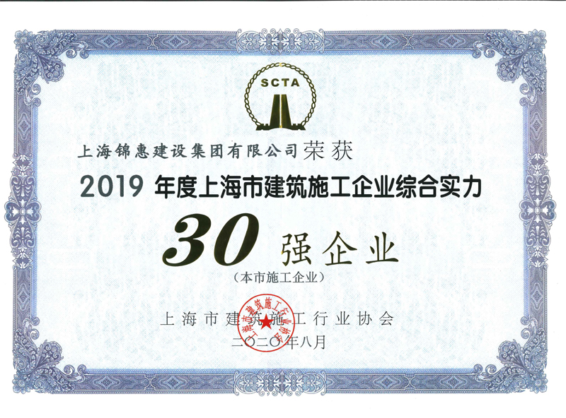 近日,上海錦惠建設集團有限公司榮獲“2019年度上海市建筑施工企業(yè)綜合實(shí)力30強企業(yè)”稱(chēng)號。