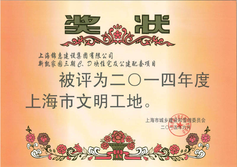 2014年度上海市文明工地獎狀